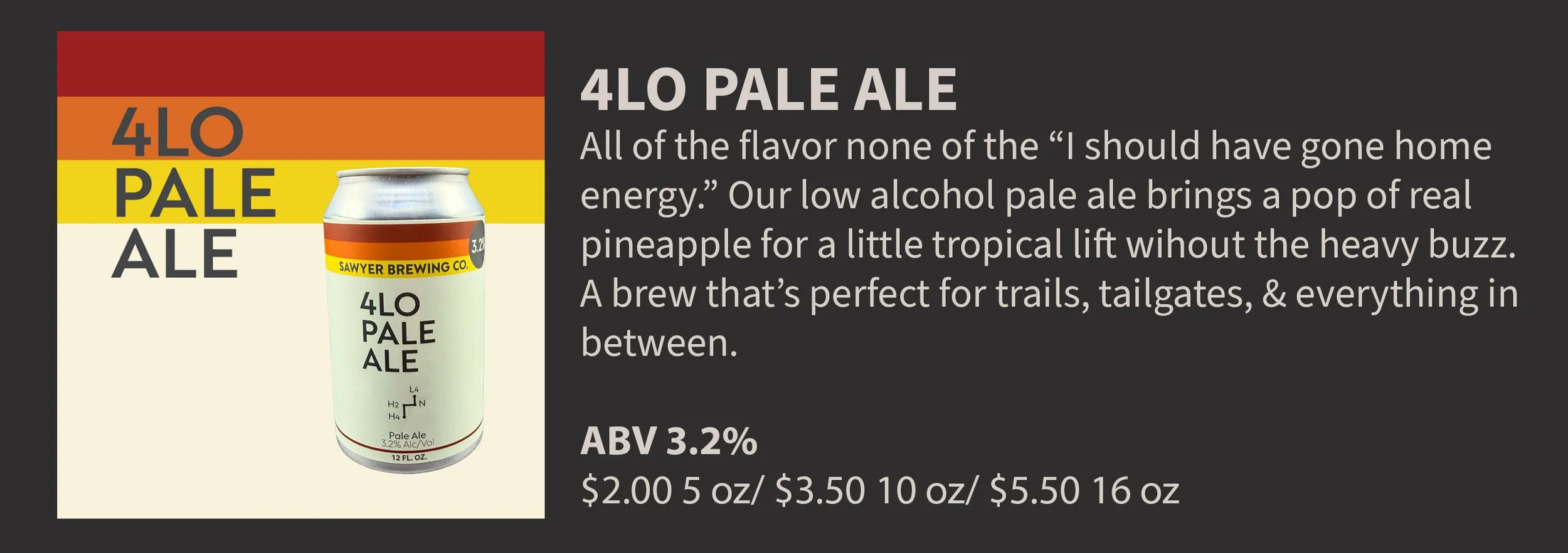 $4.00 5 oz/ $6.00 10 0z/ $8.00 16 oz